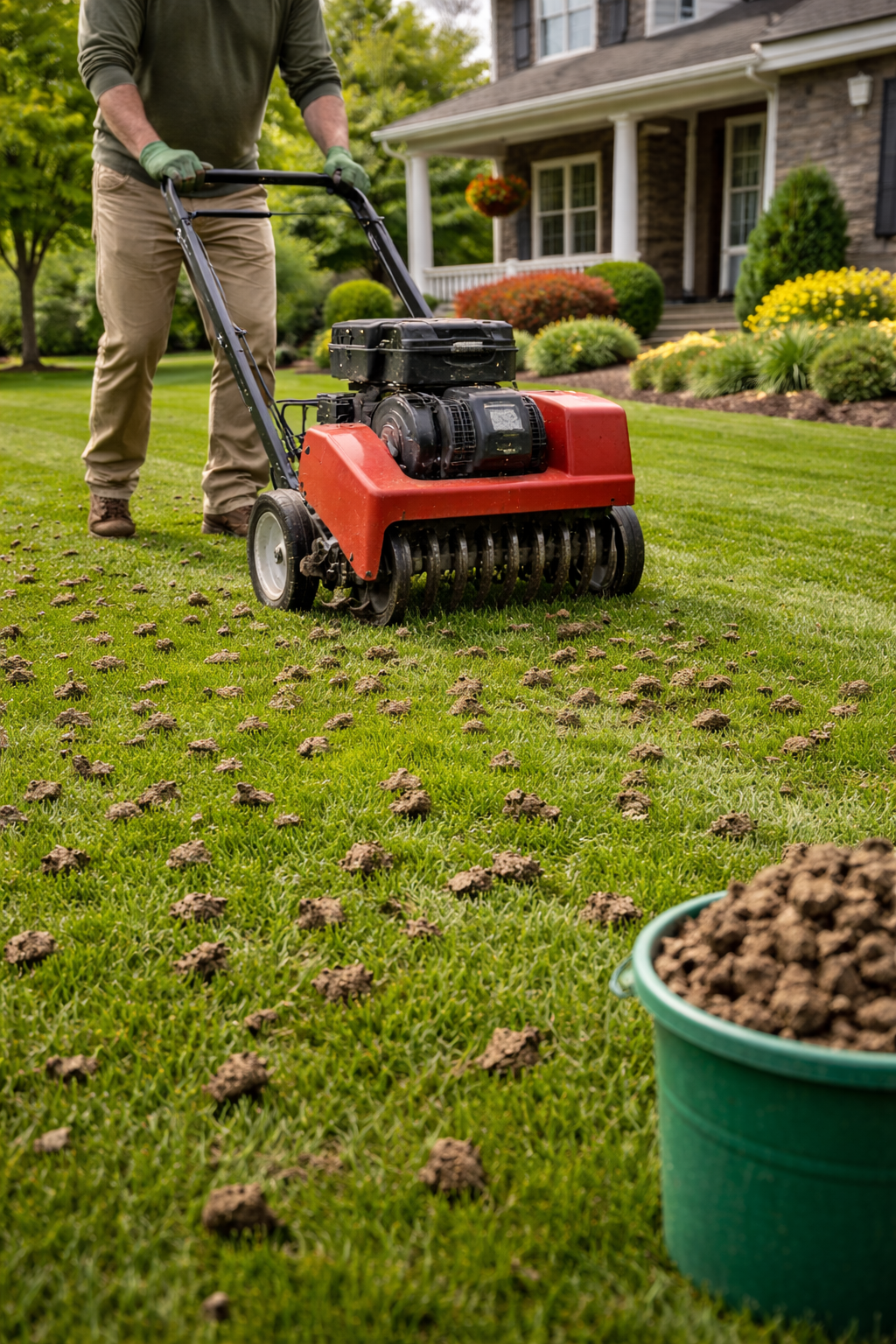 Aeration improves soil health by allowing air, water, and nutrients to reach grass roots more effectively.
